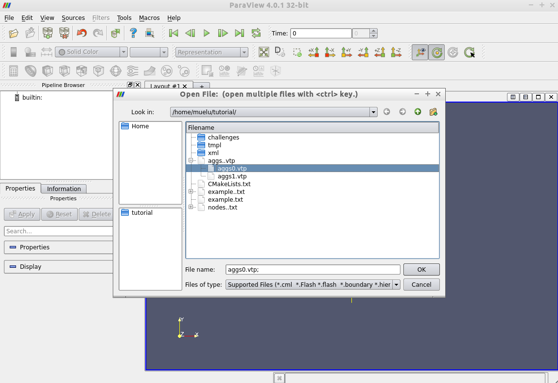 Once the visualization data is exported and post-processed you can run ParaView (if it is installed on your machine) and open the files aggs0.vtp and aggs1.vtp for visualization.