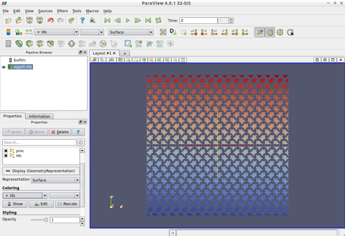 Start ParaView and open the files aggs0.vtp and/or aggs1.vtp. Do not forget to press the Apply button to show the aggregates on screen.